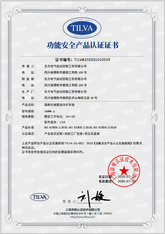 近日,東方自控自主研發(fā)的旋轉機械超速保護系統 (Usafe α)成功獲得功能安全最高等級SIL3認證,標志著公司在高端裝備安全保護領域實現關鍵突破,為國家能源及重大裝備安全筑牢自主可控的“東方屏障”。在安全系統領域,SIL認證是一項極為關鍵的等級標準,它專注于對安全系統的設計與實施狀況展開深入評估,以此精準確定系統的安全完整性水平,確保在面臨故障或事故時,系統能夠切實發(fā)揮預期的安全防護效能。在電力、化工等關...